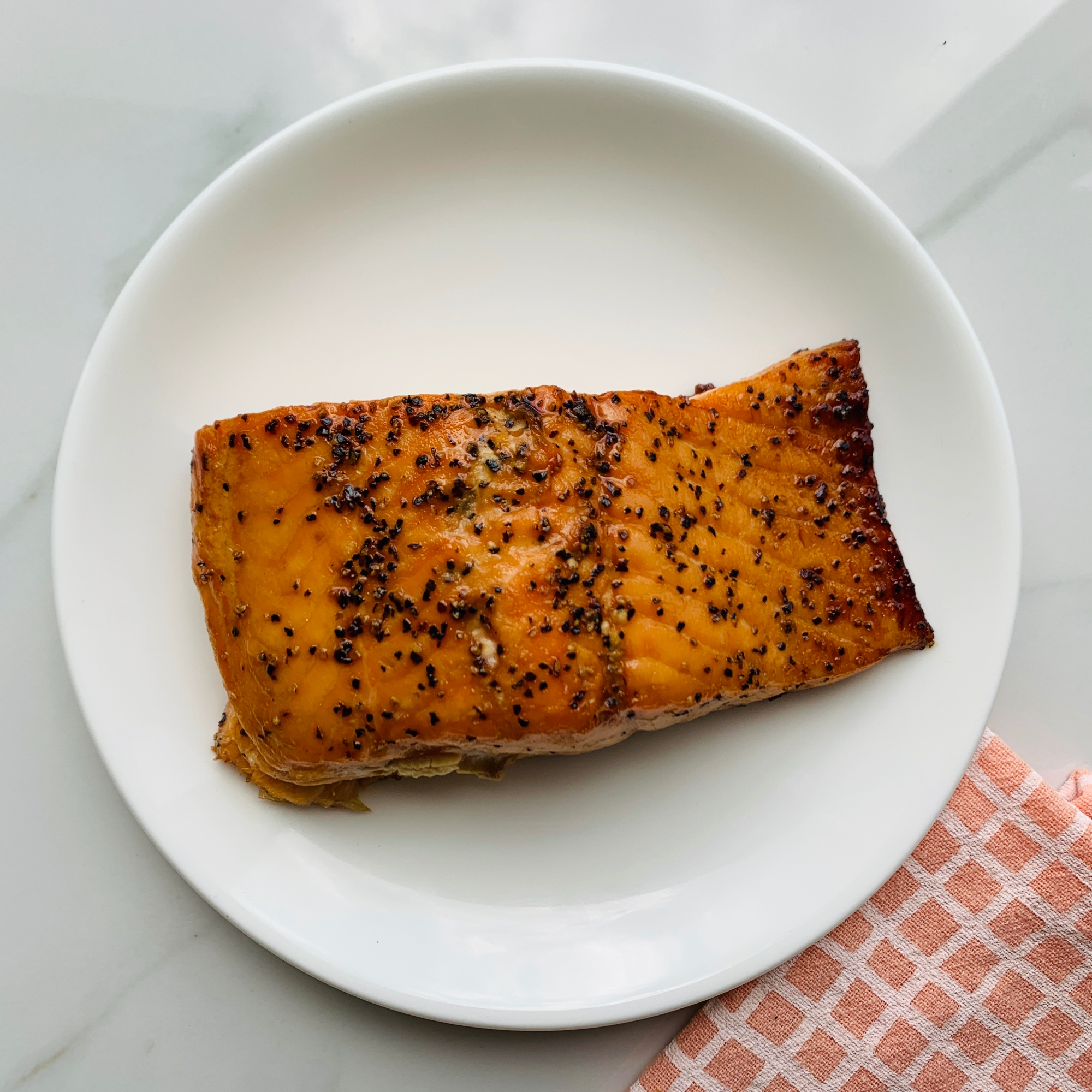 Oven roasted salmon brushed with garlic oil and topped with fresh dill (8oz)