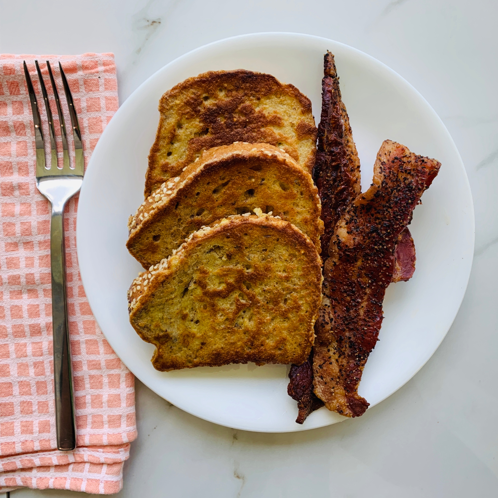 Breakfast: 6 grain French toast with pepper corn bacon(NEW)