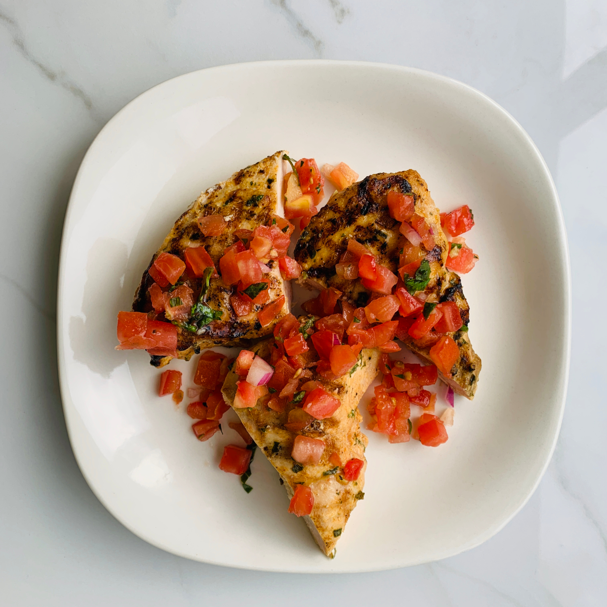 Grilled tender chicken breast topped with fresh diced tomato with basil and balsamic vinegar (6oz breast)