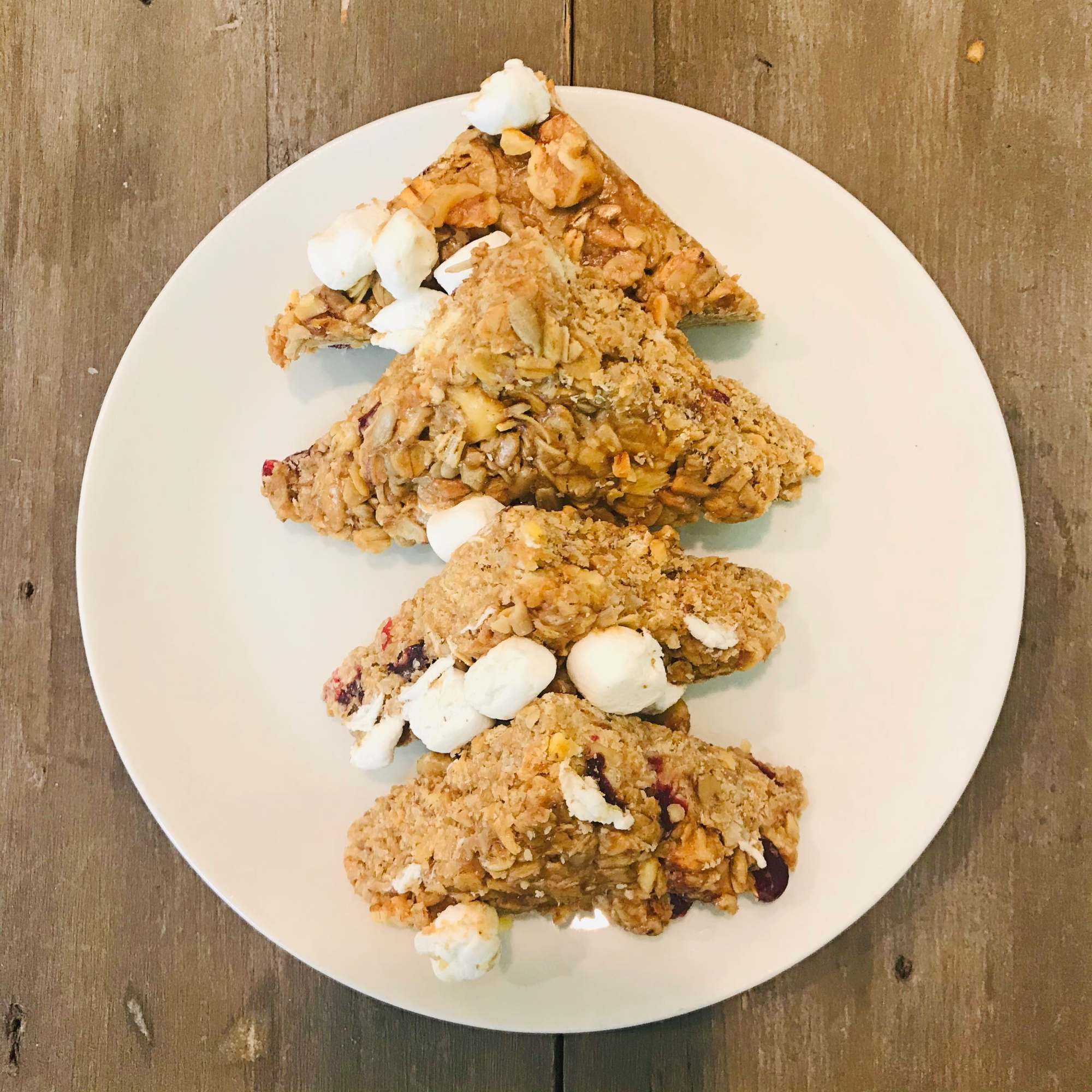 Assorted nuts, assorted seeds, oats, peanut butter, banana chip, marshmallow, honey and spices (contain tree nuts, peanut, gluten, and dairy free)