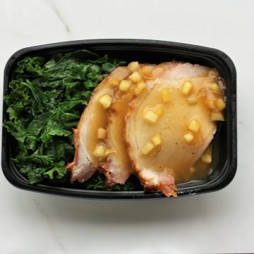 Grilled chicken, spring mix, locally grown micro green red Swiss chard, blueberries, strawberries, maple walnut (on the side), goat cheese (on the side), and house made dressings (on the side)(4 servings; Nutrition information is based on 1 serving)