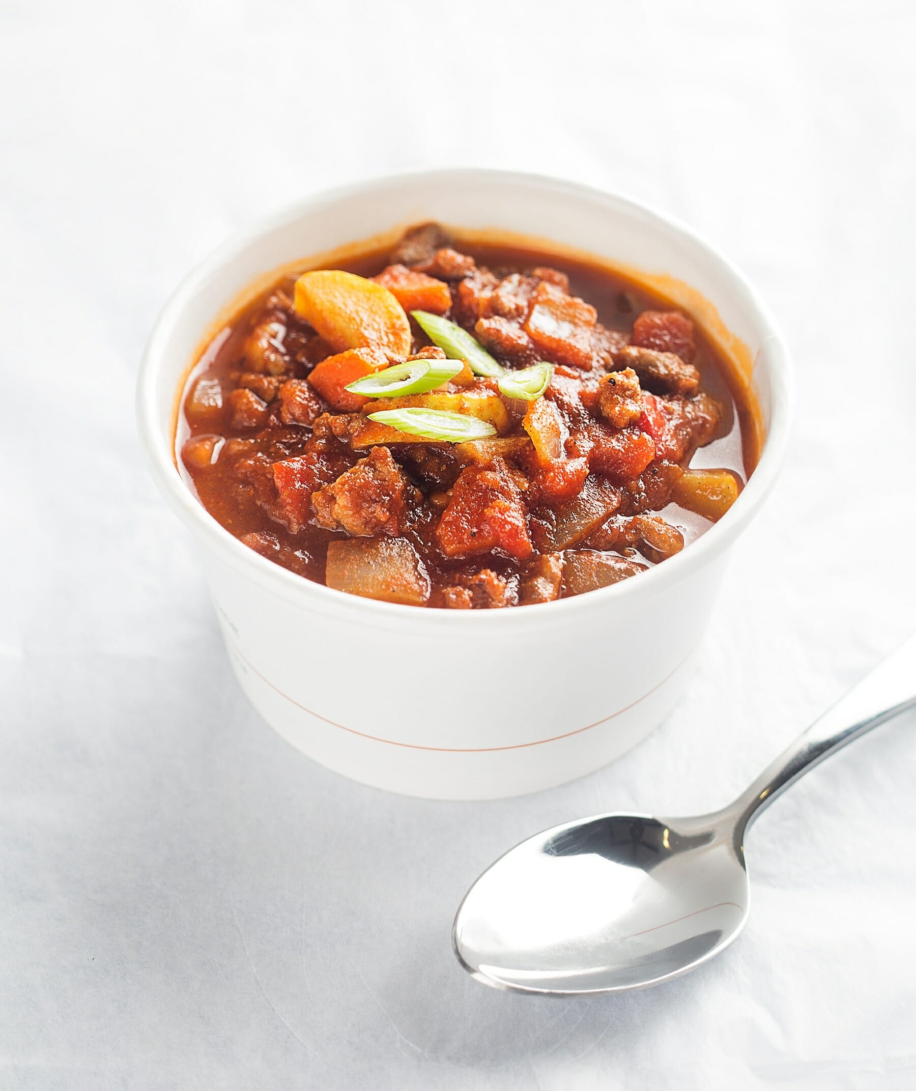 Sweet and nutty flavor lean ground turkey chili, cooked with beans(optional), diced tomato, zucchini, peppers, onions, lean ground turkey and pumpkin puree (2 quarts)(4 servings; Nutrition information based on 1 serving)