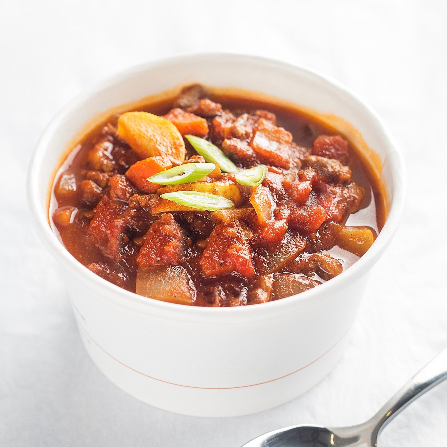 Sweet and nutty flavor vegetarian chili, cooked with beans(optional), diced tomato, zucchini, peppers, onions, and smoky chipotle pepper (1 pint)