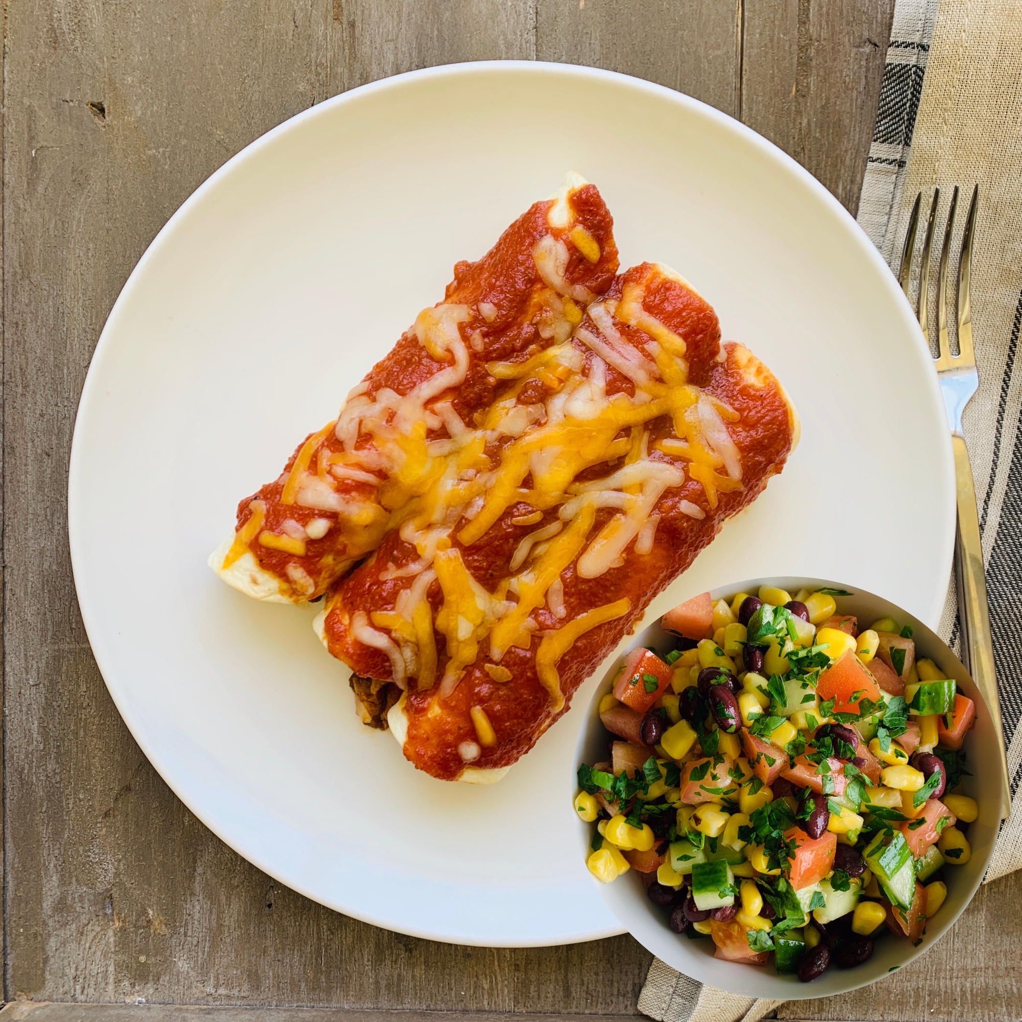 Be the first to review “Vegetarian: Enchiladas with black bean corn salad” Cancel reply