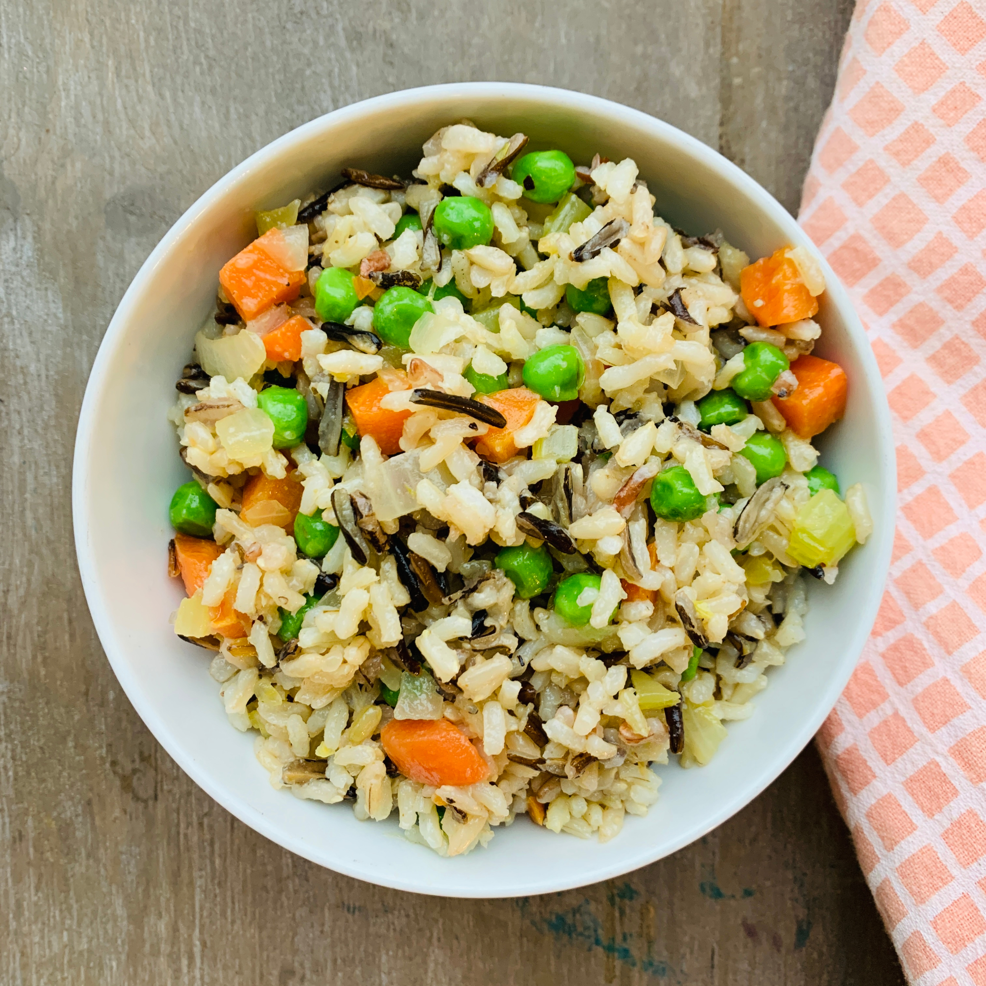 Steamed wild brown rice, dry cranberries and golden raisins, assorted vegetables and herbs (1.5 cup)